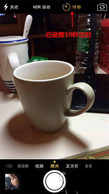 iOS8为我们提供了3秒和10秒两种定时模式。10秒定时比较适合在户外进行个人的风景拍摄。点击相应的时间即可完成设置并返回拍照界面。