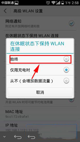 华为荣耀6在休眠状态不关闭wifi的设置图文教程