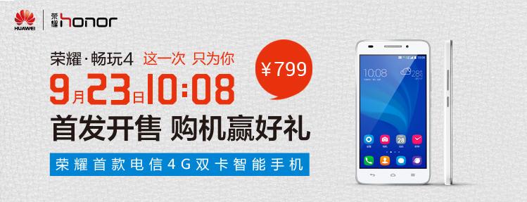 - 9月23日,华为荣耀旗下首款电信4G双卡手机——荣耀畅玩4电信版,正式在华为商城开售。畅玩4电信版最大的特点就是支持双4G、双卡。那么这款千元电信4G双卡手机怎么样呢?下面2014-09-23