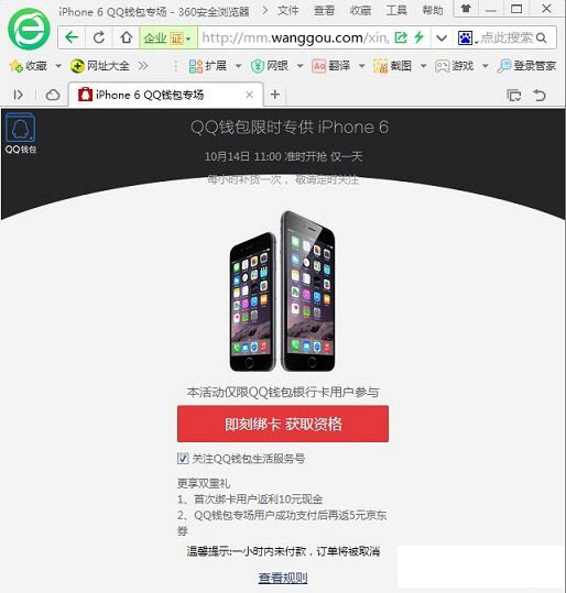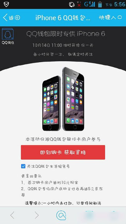 iPhone6抢购地址:QQ钱包10月14日11:00限时抢购攻略图解
