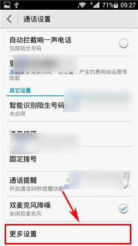 2)下拉至菜单最底部,点击【更多设置】,把【来电等待】选项打开即可。(如下图)
