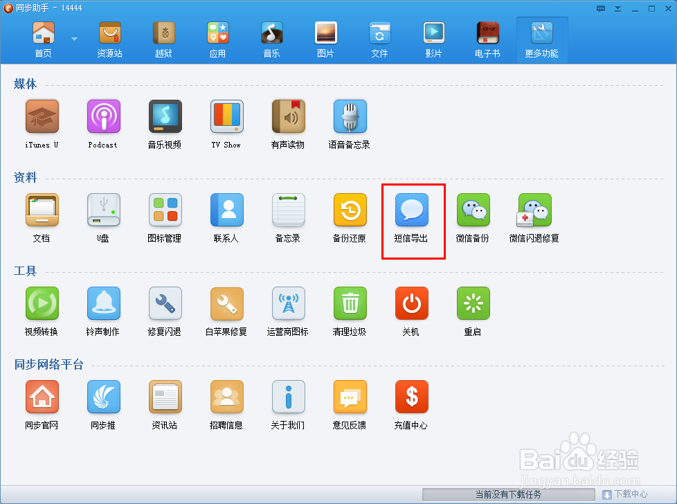 看到好多人都在问,怎么把iphone手机里的短信导出来,itunes又不行。想保存到电脑上。今天我就教大家一下,其实非常简单,只要用同步助手把短信导出就行了