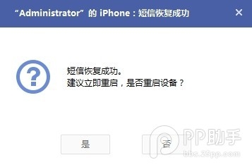 二、恢复成功后,系统会提示需要重启设备,点击【是】重启后即可恢复成功。