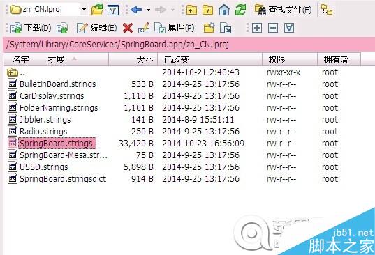 通过winscp打开路径/System/Library/CoreServices/SpringBoard.app/zh_CN.lproj