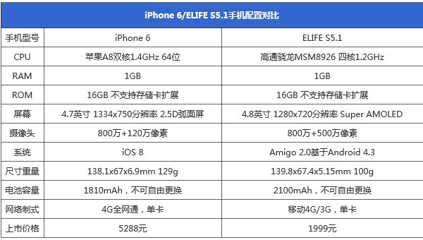 金立S5.1和iPhone6哪款好?两款轻薄手机金立S5.1与iPhone6对比评测图解