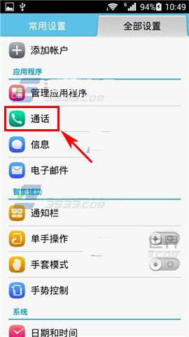 1)打开华为P7的【设置】,选择【通话】选项。(如下图)