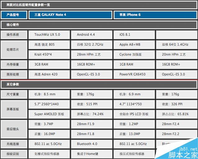 接下来我们要做一些对比方面的内容,但是iPhone 6和GALAXY Note 4毕竟存在有机身尺寸上的明显差异,所以鉴于变量并不单一的原因,最后的结果自然也不是非对即错的那么明确,主要还是说说两款机器的体验差异和背后服务的支持等。