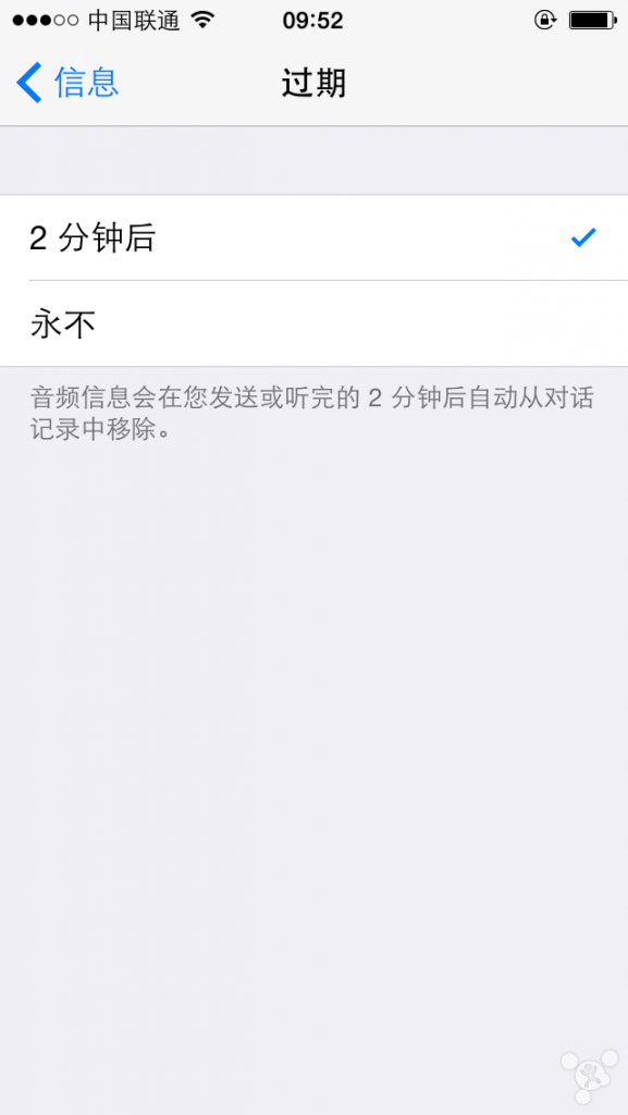 音频信息和视频信息则可以选择保留 2 分钟或者是永久保留。新增的这个选项显得更为人性化,同时也可以更安全地保护自己的隐私。此外,系统自动删除那些音频和视频信息,也可以为你节省一定的存储空间。