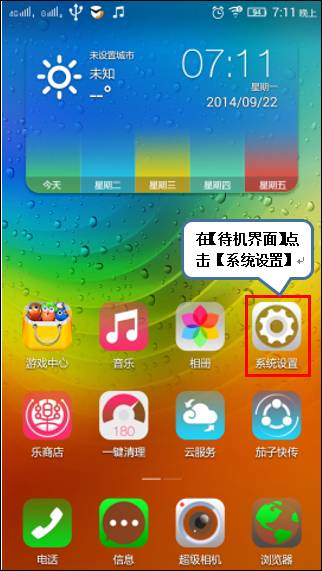 亦或者在【待机界面】点击【系统设置】,然后找到并点击【通话设置】,如下图;