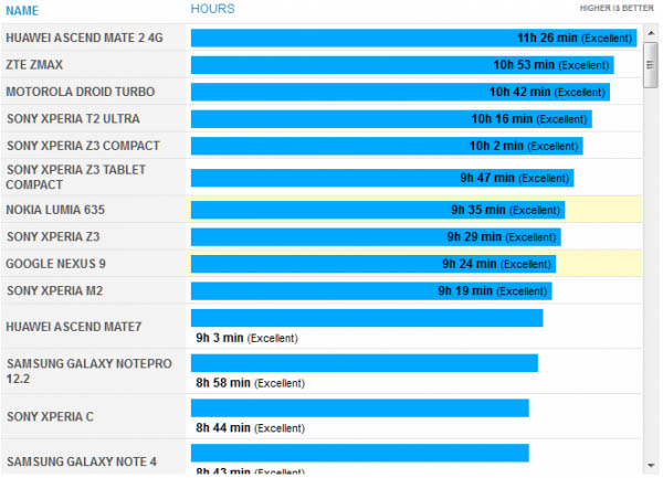 续航无疑成为当下智能手机发展的瓶颈,在推出新产品之前往往需要在大屏幕和电池之间做出平衡的选择。尽管最近发布的Nexus 6搭载了3220mAh容量的电池,但是5.9英寸Quad HD的屏幕无疑也是耗电大户,那么这款设备的实际表现如何哪?近日外媒PhoneArea对设备的续航和充电时间进行了比较。