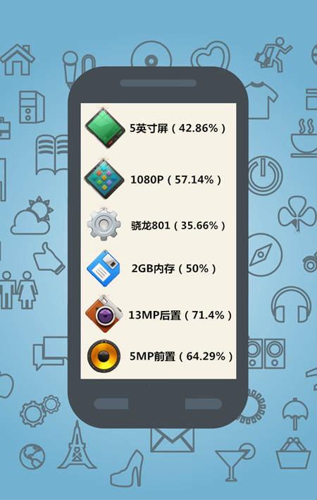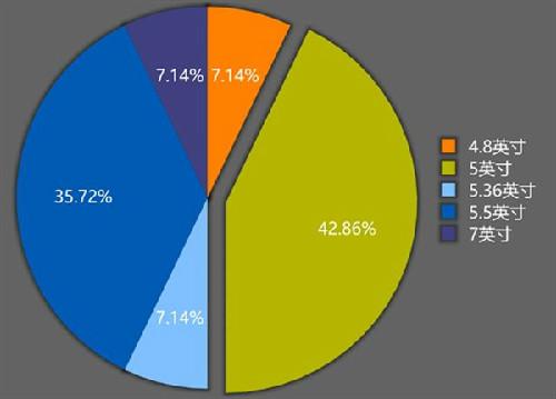 配备5英寸、5.5英寸屏幕的机型占据了近八成的比例,由此推测该价格区间的产品比较注重持握与视觉体验的平衡性。