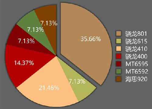 近八成该价位段手机使用的是骁龙CPU,其中骁龙801的占比最大。可见2000元价位的部分机型在配置上并不输于高端智能手机。