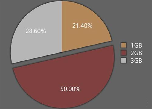 可以看到,半数机型都标配了2GB运行内存,而使用3GB内存的手机占比也接近三成,配备大内存已成为Android手机的发展趋势。
