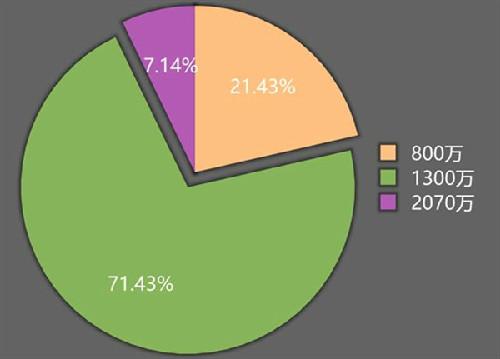 调查的机型中,采用1300W像素摄像头的机型占比最大,但由于要控制成本,所以2000W像素以上的机型还非常稀少。