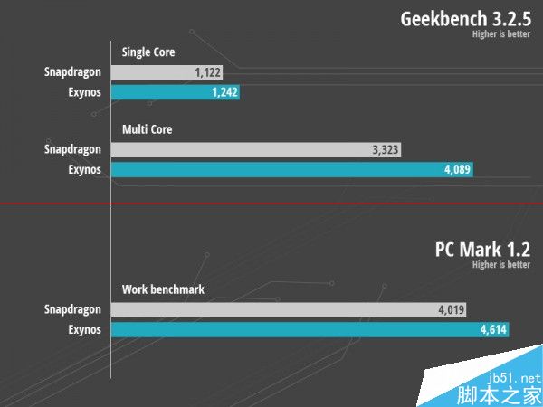 Geekbench测试:Exynos 7 Octa依然全面领先。