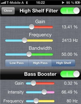 《ipEQ for iPhone》是首款在iOS平台中的音乐均衡器,现已更新支持iOS8.0。插件集成在音乐播放歌曲的界面,为用户提供了低通滤波器、高通滤波器、高频滤波器几种不同类型的滤波器。