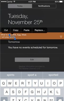 《NCMemo (iOS8)》是一款通知中心的扩展插件,可以为通知中心添加备忘录功能。在这个备忘录中用户可以进行复制、粘贴等操作,也可以自定义备忘录,比如改变背景颜色、改变字体等。