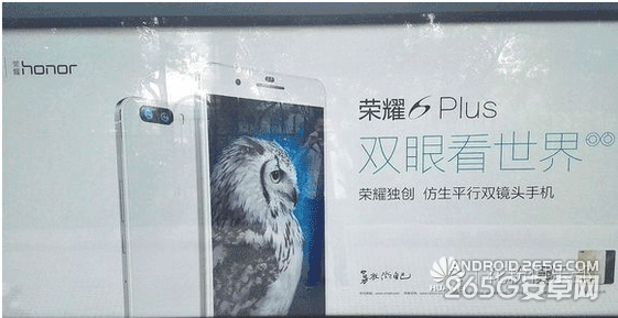 不久之前网络上就出现了疑似荣耀6Plus的宣传广告,双摄像头的后盖十分明显,再加上“双眼看世界,荣耀独创,仿生平行双镜头手机”的宣传语,看上去可信度很高。