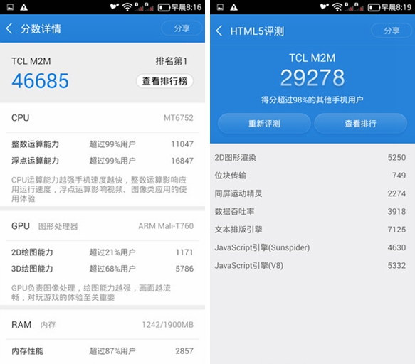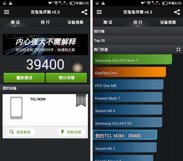 总体看来,搭载MT6752的TCL么么哒3N有着出色的性能表现。这也难怪各大手机品牌对MTK这颗神U如此追捧。