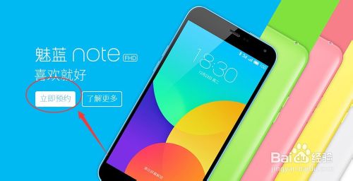 2、然后在首页我们找到魅蓝手机的图片页,点击立即预约。