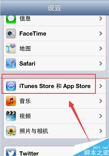 3、打开【设置】后,往下拉去界面,找到【iTunes Store和App Store】这个选项,并且点击打开,如下图所示。