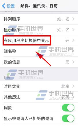 2)找到并进入【在应用程序切换器中显示】,将【最近通话】关闭即可。(如下图)