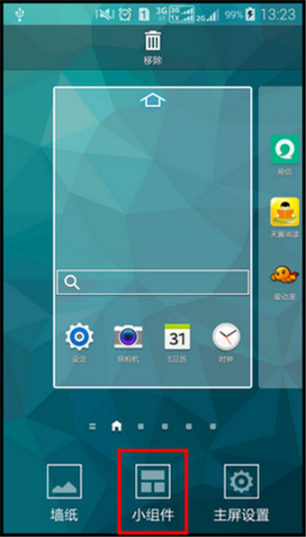 2.点击屏幕上的【小组件】。