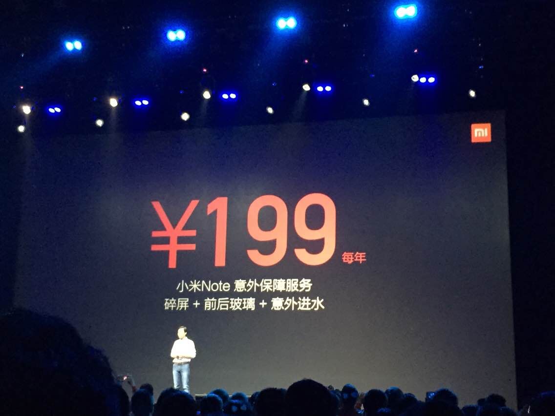 为了防范不慎使用导致的手机损坏,小米Note同样拥有碎屏险服务,碎屏+前后玻璃+意外进水在一年内都可以保修,碎屏险售价为199元/年。