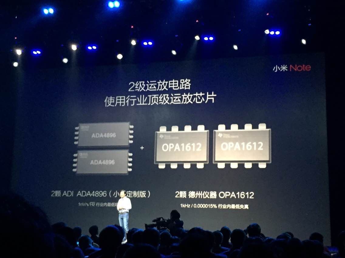 既然Hi-Fi玩得如此热闹,小米Note也并没有错过,与MX4 Pro完全一致采用2级运放电路,使用了行业顶级运放芯片ADI ADA4896(小米定制版)X2+德州仪器OPA1612(小米定制版) X2,堪称豪华搭配。