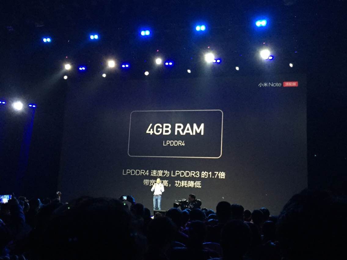 除此之外,为了搭配强大的高通骁龙810处理器,顶配版小米Note配备了LPDDR4 4GB内存,所以小米Note顶配版成为了全球第二款支持4GB RAM的手机。