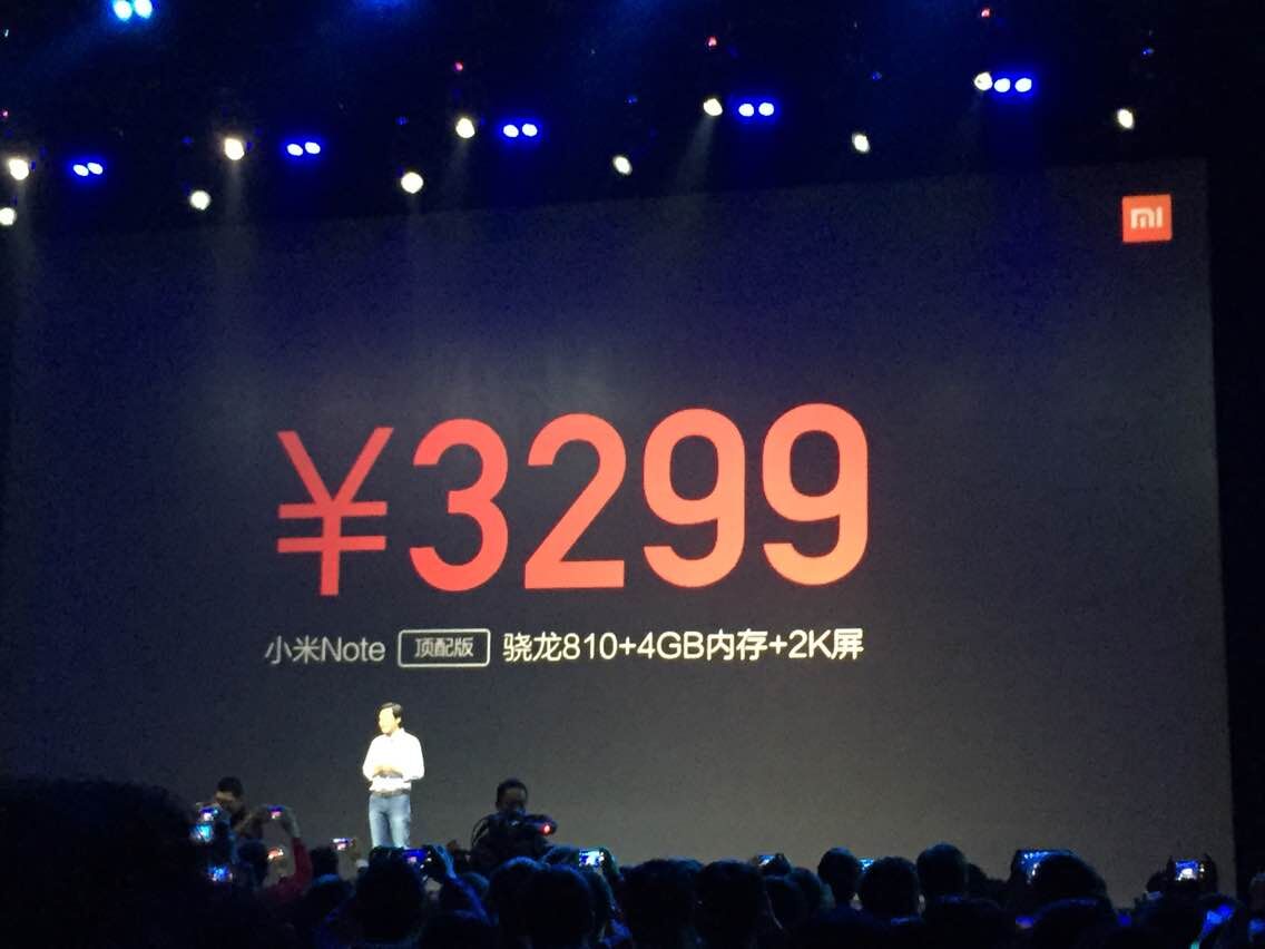 3299元小米Note顶配版正式发布 骁龙810+4G内存