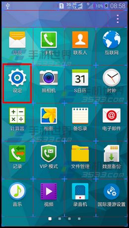 1)如三星s5屏幕出现小格子我们可以打开【设定】。(如下图)