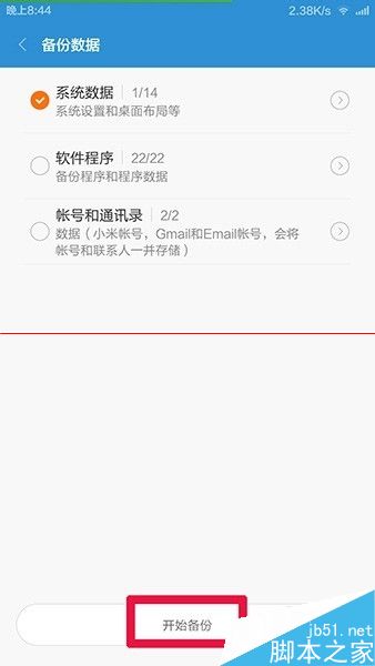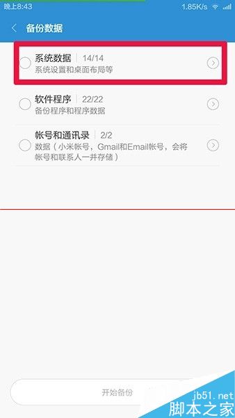 8、如下图,单击红框处 开始备份