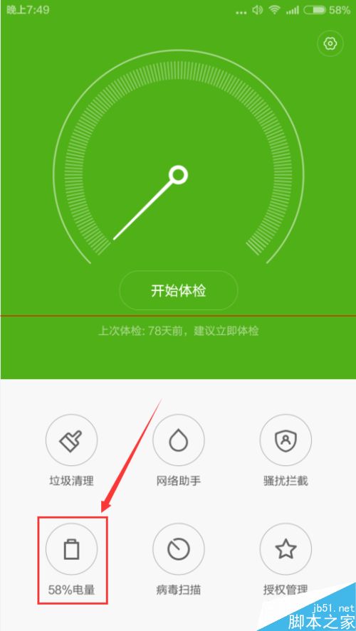 2、在安全中心,点击【电量图标】,打开电量界面,如图所示: