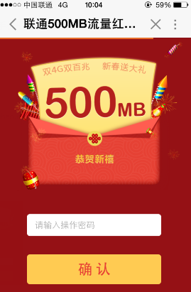 前几天小编打电话问过客服,客服说活动时间没到,可是今天已经6号了呀!联通难道是骗人的?大家可以再等一等,下午看看还有没有需要输入操作密码,说不定下午就可以成功领取到流量红包了呢?!需要注意的是,本次活动并不支持甘肃、湖北!