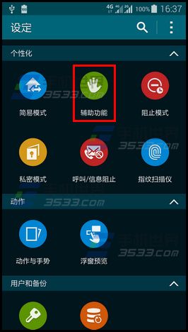 1)打开三星s5手机【设置】,进入【辅助功能】。(如下图)