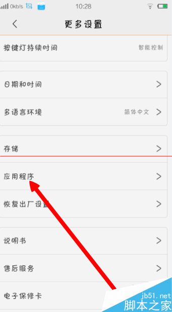 3、进去“更多设置”后,点击“应用程序”