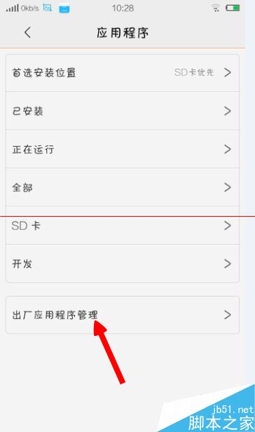 4、进去“应用程序”后,点击“出厂应用程序管理”
