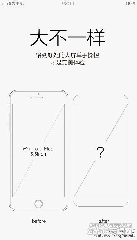 乐视手机自曝窄边框屏幕的同时,也不忘嘲讽了一下iPhone6 Plus,宣称乐视手机将会有更好的单手操控体验。