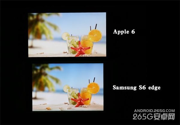 但iPhone 6胜在屏幕的亮度上,IPS屏幕发光依靠背光源,外加iPhone 6的分辨率只有1334x750像素,1000500个像素点挤在4.7英寸的屏幕上,单位面积内没有太多的像素点阻挡光线的透过,因此亮度可以通过调整背光源实现。而AMOLED的屏幕靠像素点自发光,为了控制屏幕的能耗,在AMOLED上越多的像素点亮起来的时候,屏幕整体的亮度会相应的下降。因此在发布会上三星表示S6 edge这块屏幕可以达到600尼特是指在整块屏幕只有一个像素点亮起来的理想状态下,而当实际显示图片的时候,整体的亮度则没有理论亮度在相同级别的IPS屏幕亮。