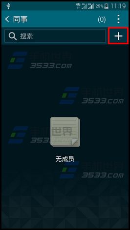 1)打开三星S6手机【联系人】点击【群组/分组】按钮,选择分组如【同事】。(如下图)