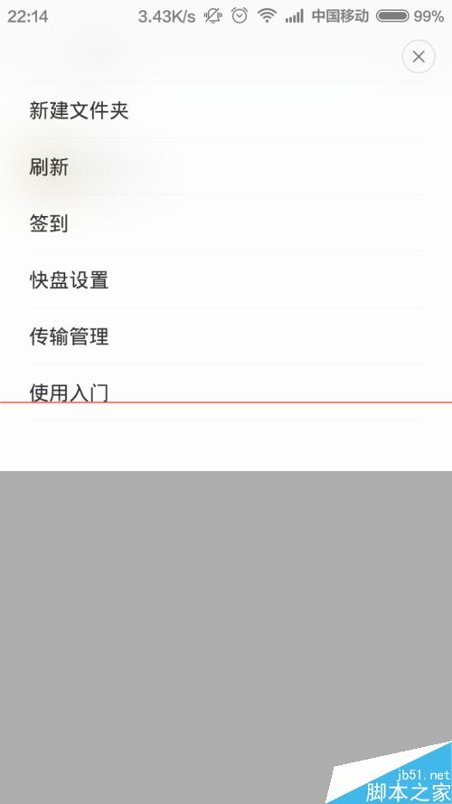 4、接下来,进入快盘界面之后,点击应用右上角的按钮,然后将打开菜单选项,我们可以在这里新建文件夹或者是进行相关的设置。