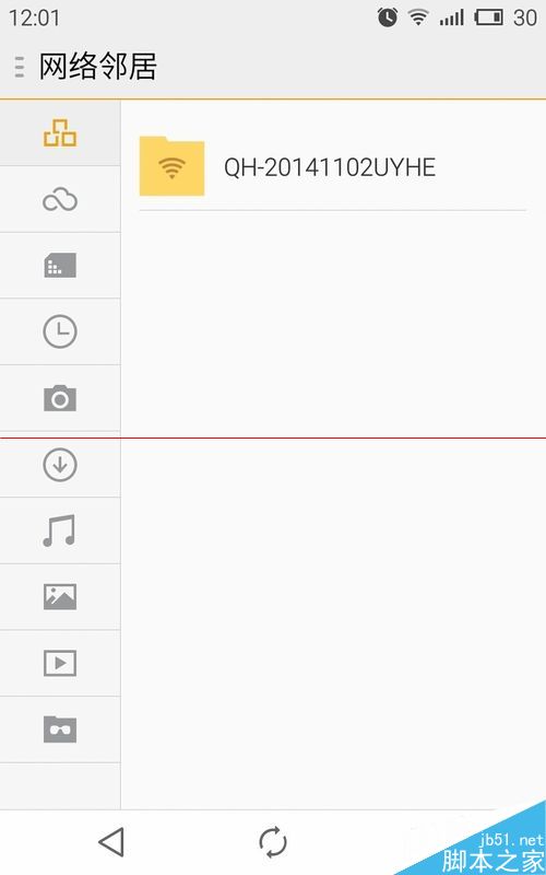 12、拿出你的手机,点进文件管理-网上邻居。在共同的网络上可以进入
