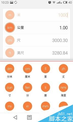 在同一种度量衡内,一次显示四种单位,这些单位都可以通过点按,更换成另一种单位。比如点按公里,在下方弹出的列表中选择厘米。