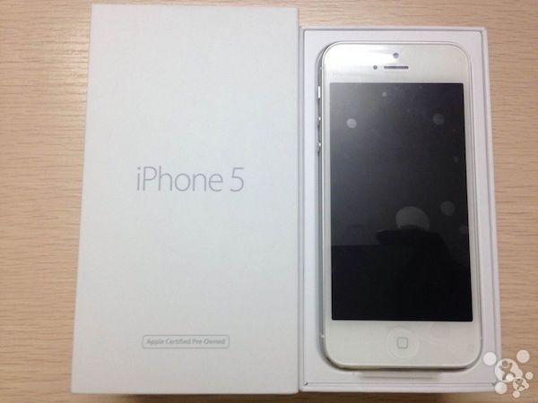 与置换机只有一个单机头不同,官翻机出厂时带有包装且搭配了全新的配件,下图为官翻iPhone 5的包装,白盒,且盒子上印有“Apple Certified Pre-Owned”