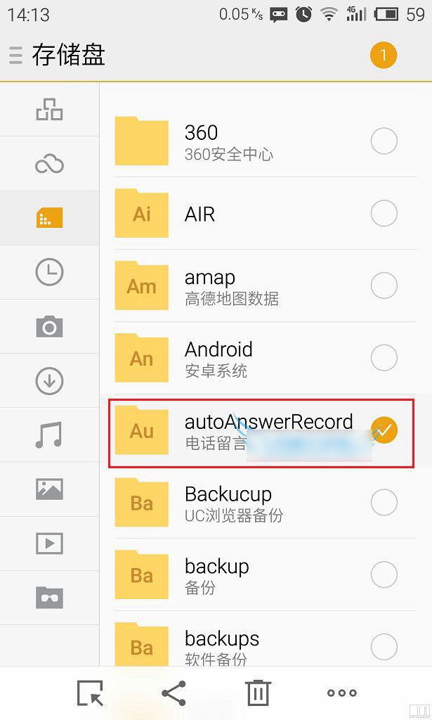 四.接下来,我们还要进入魅族手机文件存储盘,在文档根目录还需要建立一个名为【autoAnswerRecord】的文件夹,这个文件夹默认是没有的,需要大家手动建立,如下图所示。