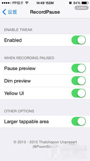 iOS8完美越狱 越狱插件RecordPause可暂停视频拍摄功能