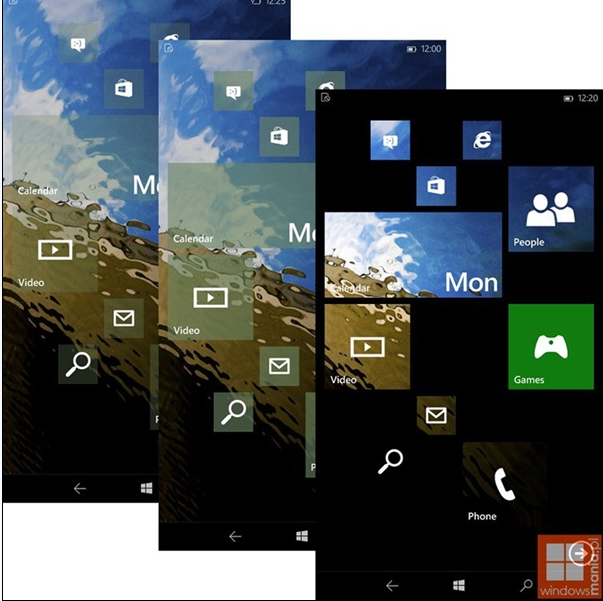 Windows 10手机将允许用户自定义壁纸,同时可以根据自己的偏好来调整背景透明度,值得注意的是,Windows 10手机的壁纸是被直接“切割”融入每一块桌面磁贴的,而非向传统设计那样在图标、磁贴底部铺一张完整图片。