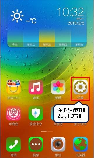 1、在【待机界面】点击【设置】,如下图所示: