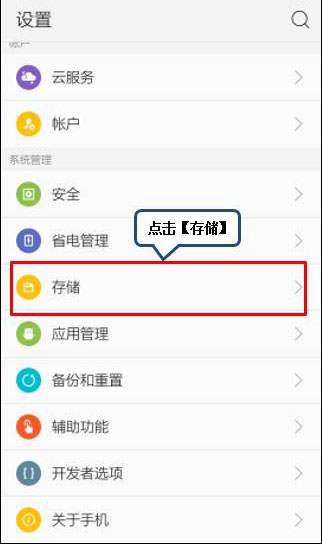 2.找到并点击【存储】,如下图所示: